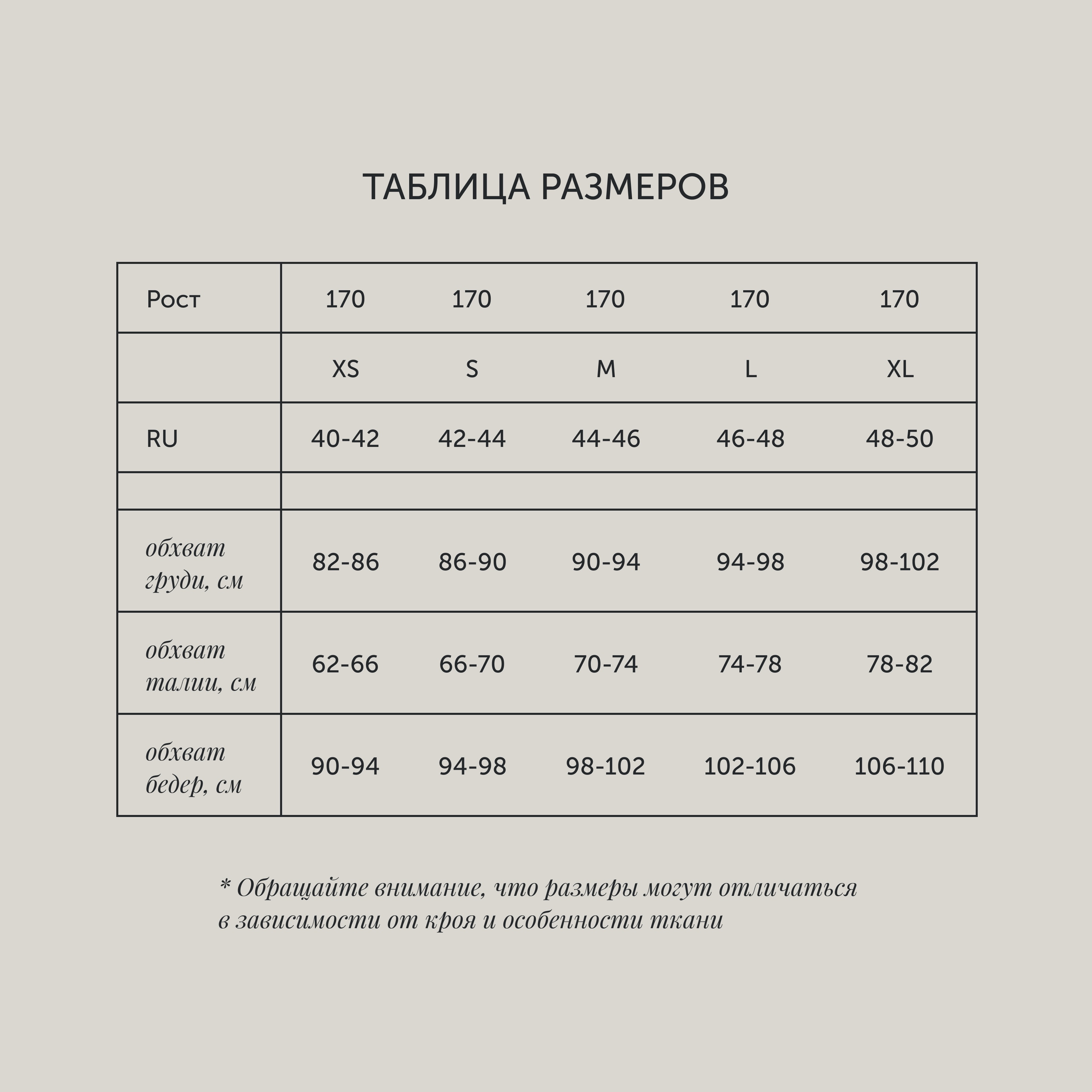 Таблица размеров