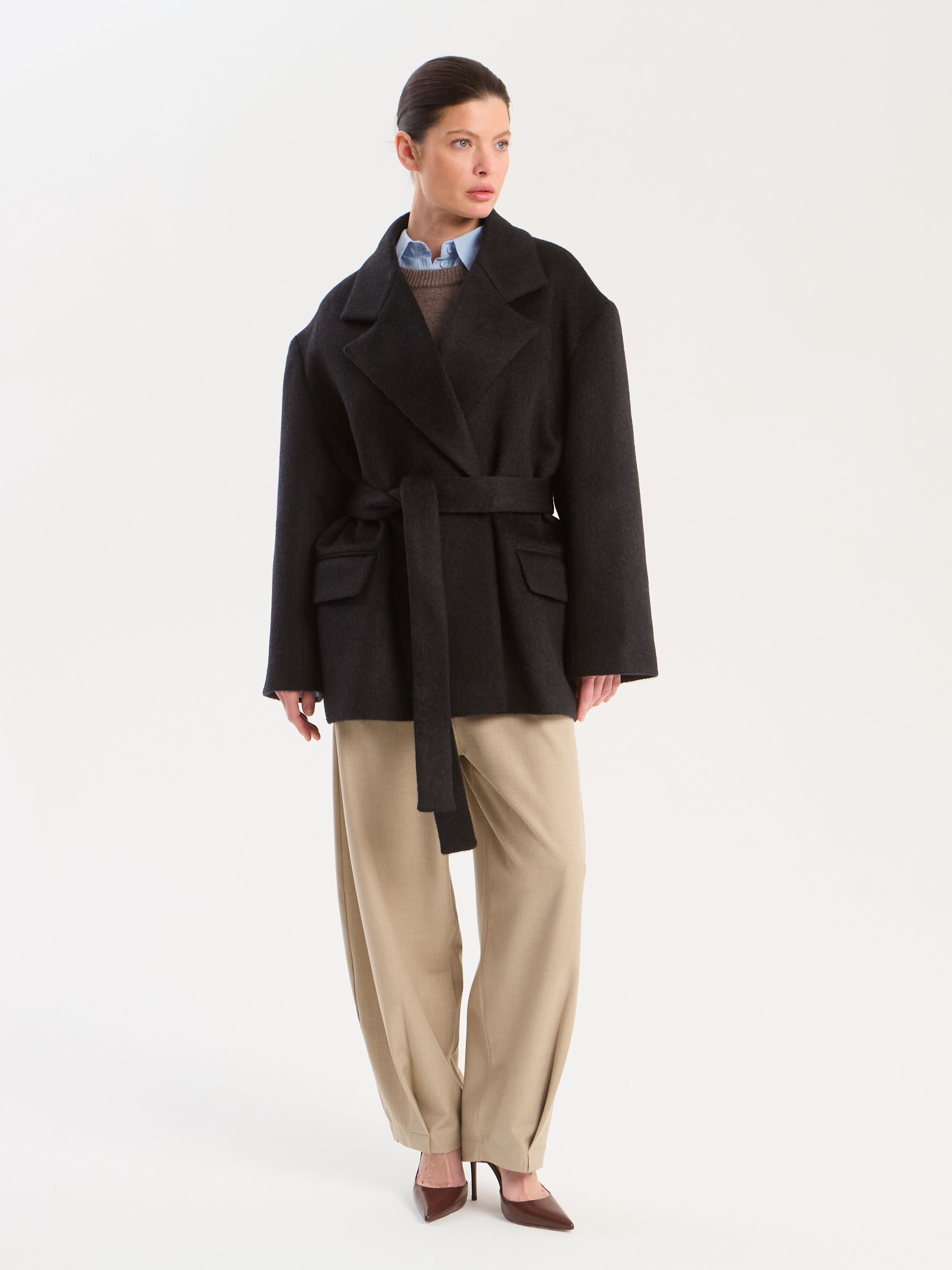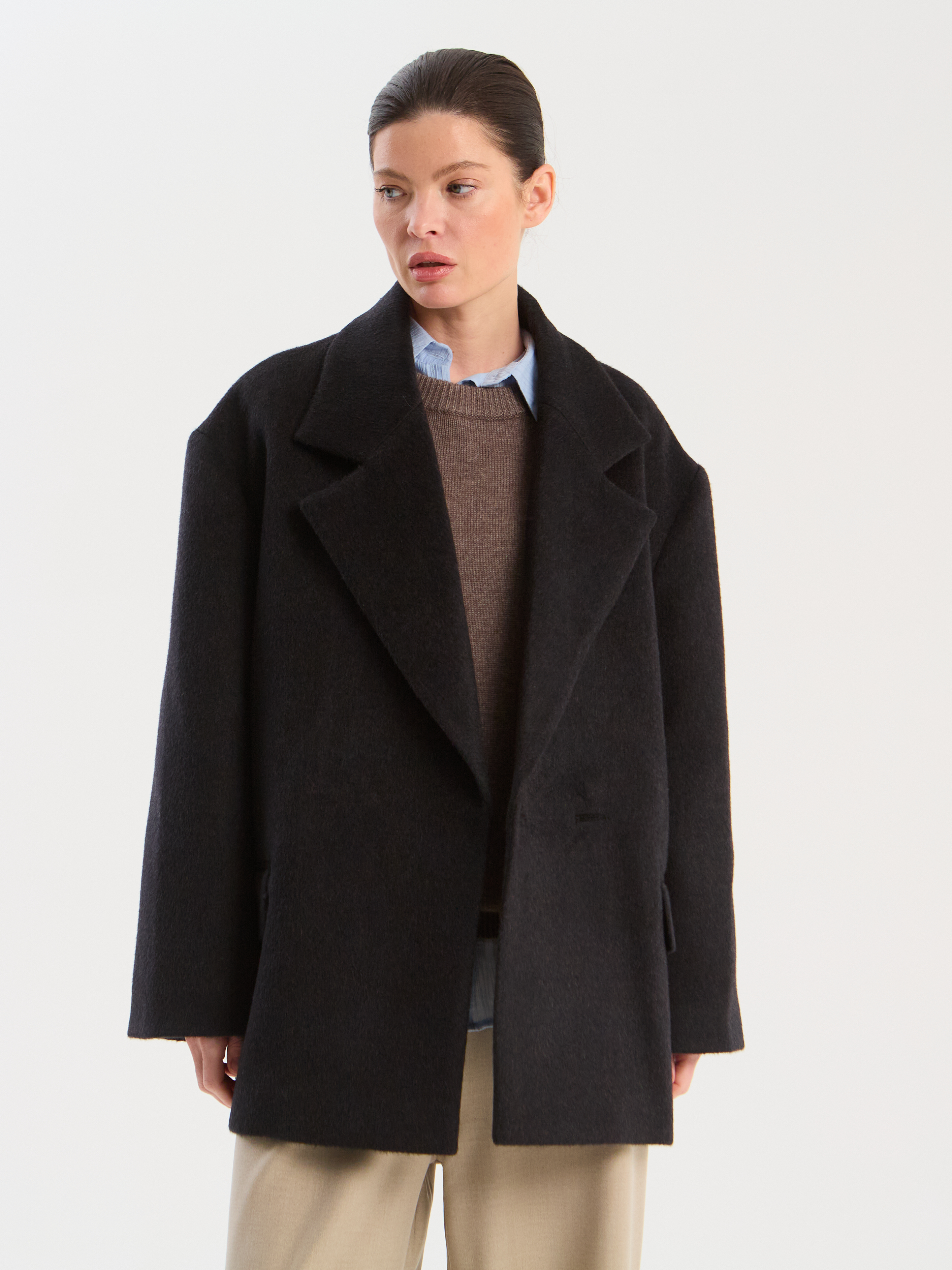 70% шерсть, 10% альпака, 20% полиэстер. Материал подклада: 55% полиэстер, 45% вискоза.